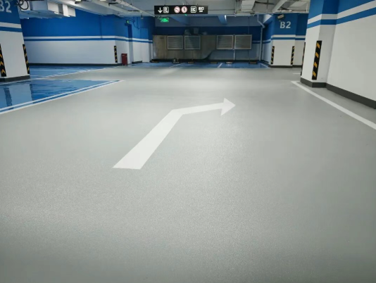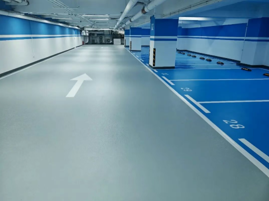 停车位:无溶剂环氧自流平地坪、水性聚氨酯哑光地坪