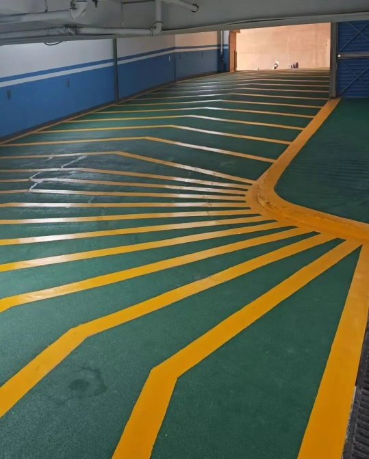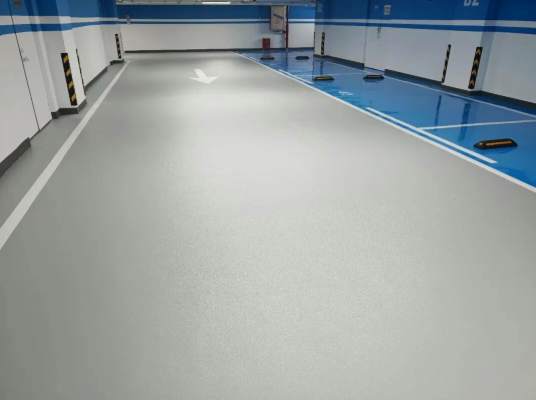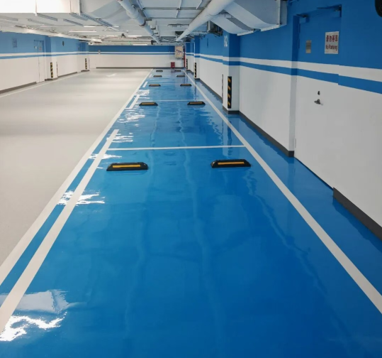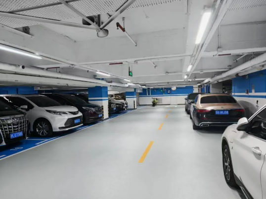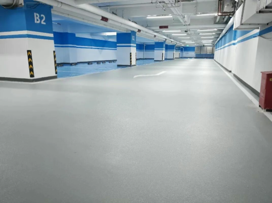 停车位:无溶剂环氧自流平地坪、水性聚氨酯哑光地坪