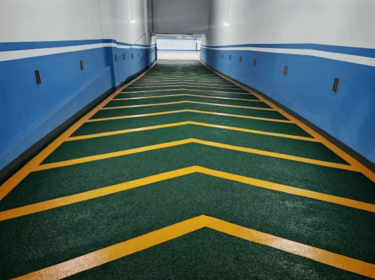 选材:博歌无溶剂环氧底中涂、无溶剂自流平面涂、无溶剂纹理面涂、水性坡道专用材料